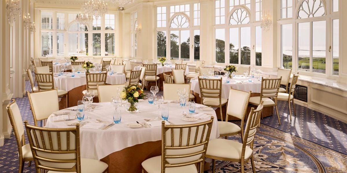 The Crystal Room serves as a stylish pre-function space for the Ballroom. Large crystal chandeliers and expansive picture windows fill the room with natural light. The room accommodates up to 180 guests and provides a welcoming setting for registration, drinks receptions, or smaller gatherings before events in the ballroom. Its sophisticated décor and serene atmosphere make it perfect for networking, private dining, or intimate celebrations. The room connects seamlessly to the Ballroom, ensuring smooth event flow.